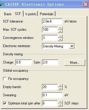 对于我之前提过的一个帖子 http://muchong.com/bbs/viewthread.php?tid=4753735&page=1 还有些问题,希望大家可以积极讨论、 对于spin polarized的选择,不选择,是意味着计算中不考虑磁性吗,那么不勾选这个的时候,对体系的其他性质会有影响吗,对能带有影响吗,spin polarized 勾选与不勾选做出的能带值是一样的吗? 对于文献与我计算的结果,我发现我的计算结果就与文献中的不一致啦,如图中a的设置的时候,E=-314eV,磁性为3 uB.设置如b的时候,E=-646 eV,磁性为2uB .也就是我的结果是AFM要比FM更为稳定了。 我看到文献中讲到没有对自旋进行优化。您讲到如果勾上,CASTEP会优化设定的初始自旋态,找到能量最低的自旋态。请问这里是否优化自旋有什么区别呢,一般正确计算磁性的时候是否要进行这个自旋的优化呢?也就是对于在勾选 spin polarized 的情况下,是否在具体的系统中,勾选优化自旋和不优化自旋有什么区别呢? |