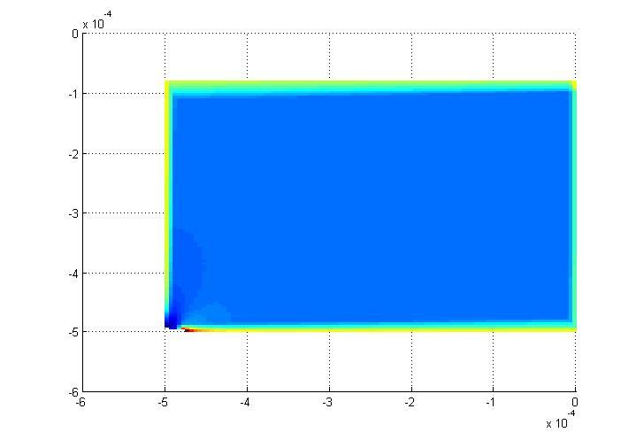 模型,左边X方向约束,底边Y方向约束。上边均布载荷。左下角有个小洞。 位移出来都好好的。 如图是Y方向位移, 可Y方向应力怎么是这样? 边界上的应力值怎么不对。应力值使用高斯点外推出来的。 是我求应力的过程出错,还是之前分析过程出错? 位移 y方向应力 |