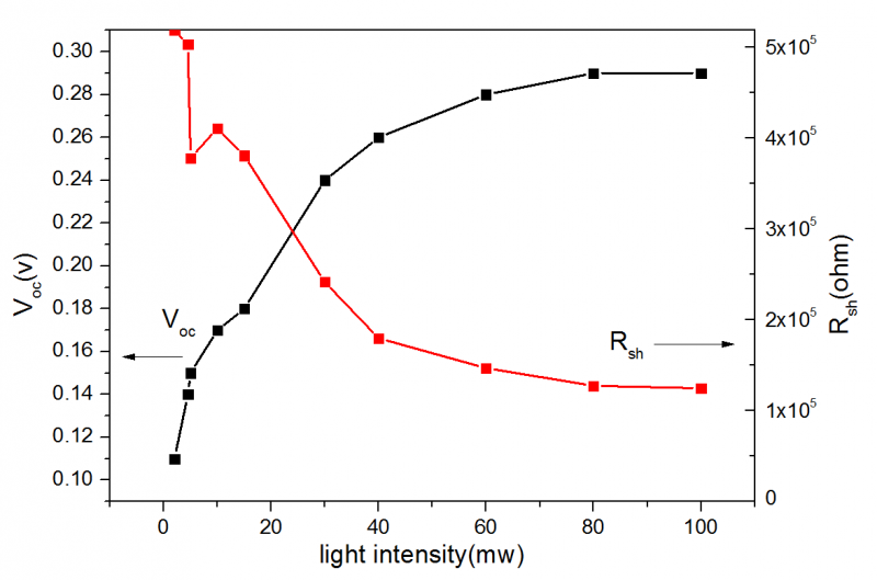 补充一下,我改变入射光强后,开路电压也会增加,而且并联电阻在减小。原则上光强是不会改变开路电压和入射光强的对不对?谢谢各位了~