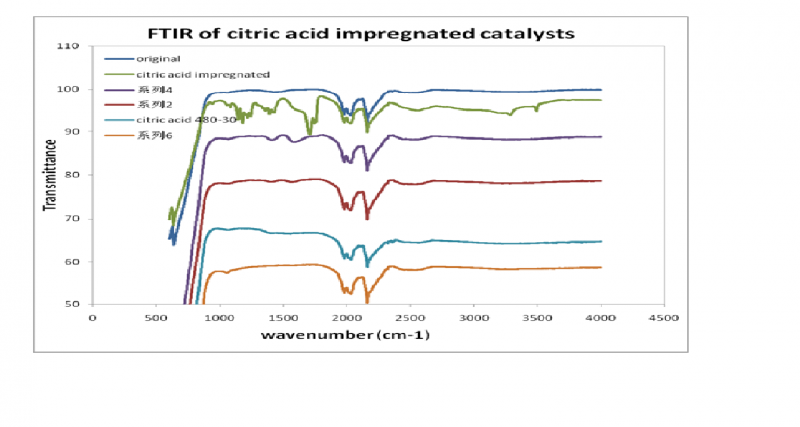 从上到下,依次是NiO/Al2O3样品,NiO/Al2O3/柠檬酸未加热,NiO/Al2O3/柠檬酸280度,410度,480度 惰性气氛下加热,最下面的是Al2O3和柠檬酸在N2中加热到900后的样品FTIR图,不知道2000附近的峰,还有2200附近的峰分别属于什么基团,希望高手指教
