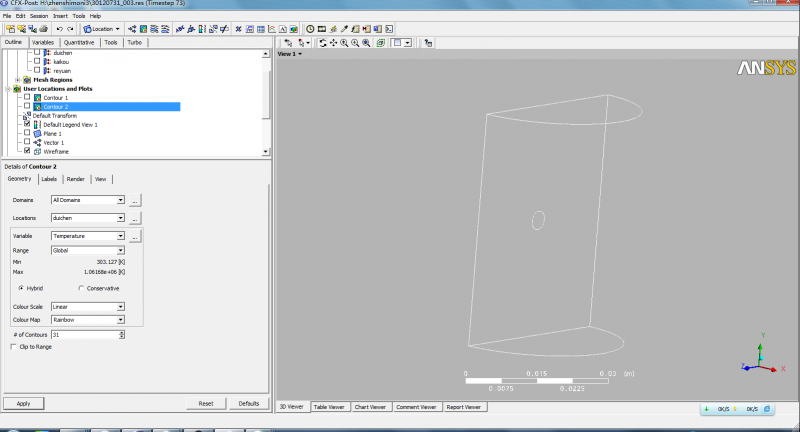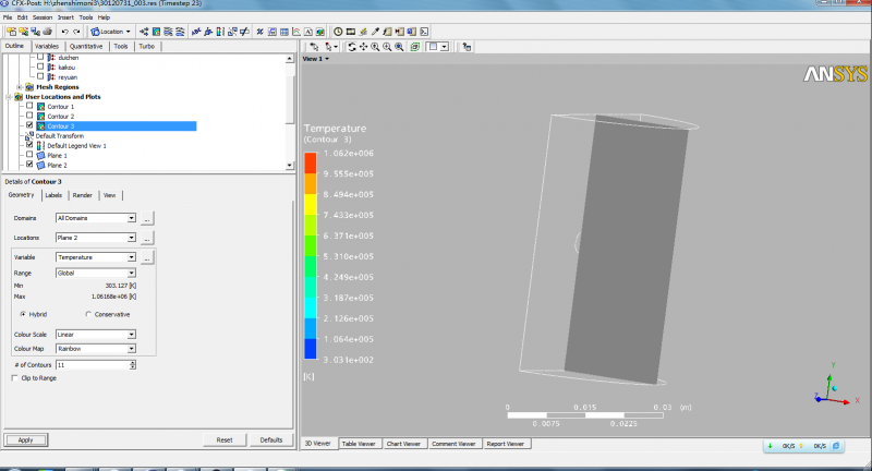 看楼主的标尺,水的温度最高在e6K以上啊,那个横热流的热流密度是多大啊?不知最后算出来的温度大概是多少?