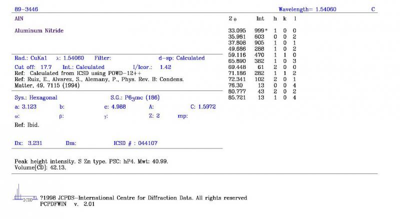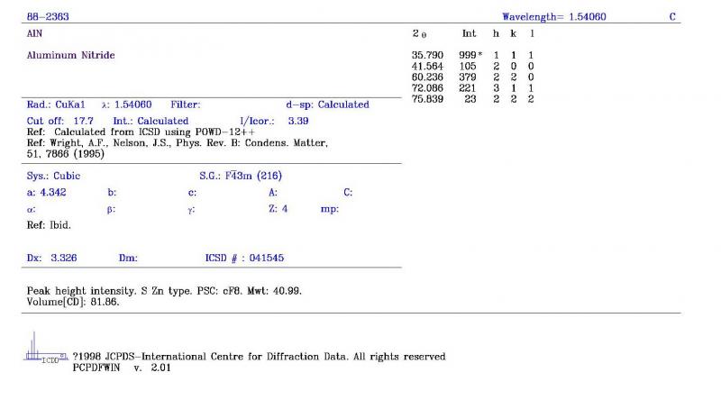 求助-ZnO、AlN XRD PDF卡片