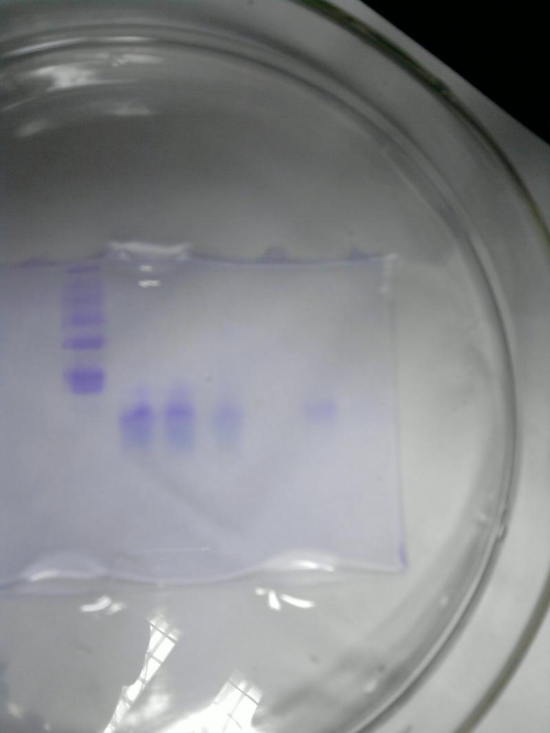 请大家帮忙分析下我的SDS-PAGE蛋白检测胶啊