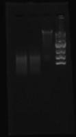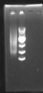 以前没有经验,哪步出错了也不晓得,请做过的帮忙指点: 1.酶切后电泳图片(图1):条带大小正常吗?10000的marker 2.选择性扩增条带很弥散(图2),用1%琼脂糖胶跑电泳紫外透射观察的。这样做有什么问题?很多文献都是用银染法观察,必须这样做吗? 图1. 从左到右:酶切片段1,酶切片段2,目的基因组,10000marker 图2 从左到右:选择性扩增条带,10000marker |