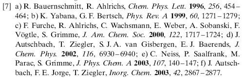 shenhai1315: 金币+2, 谢谢您的回复.但是ACS styl里面的格式里面也不能标识a),b)... .你给的这种一个引用含有好几个文献,我知道怎么弄的. 2012-08-05 15:51:38
