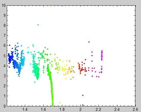 代码就是普通的:a=[],b=[],plot(a,b,'r.')(因为点很多,不便给出)。我的其他图形也都是能显示的,不知道这个为啥不显示
