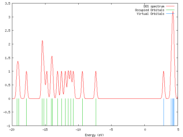 用高斯优化分子后,用轨道能量可以知道DOS (density of satats),如下图一.