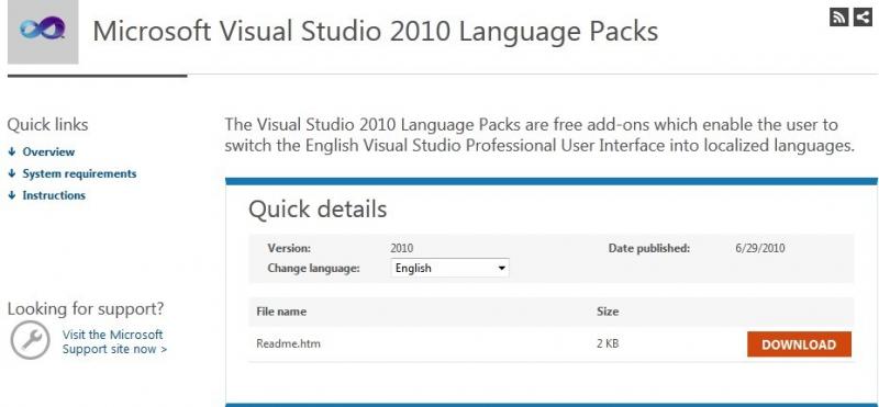 求Microsoft Visual Studio 2010 旗舰版 英文语言包