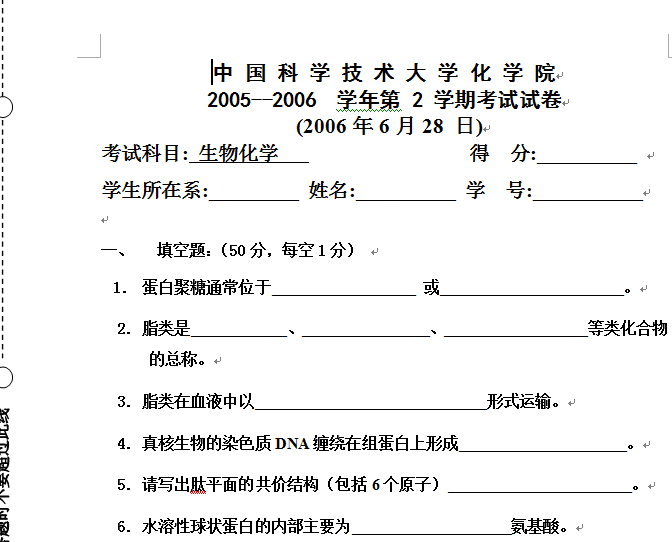 【期末试题】生物化学试题