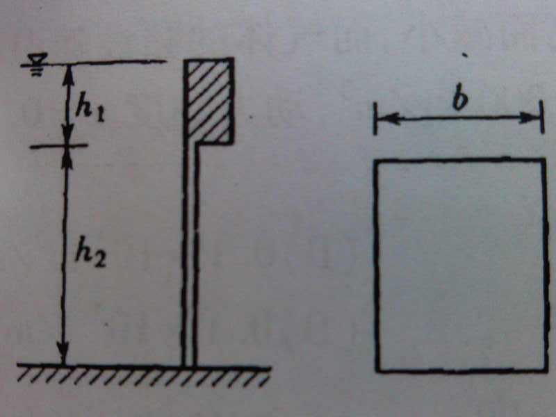 下面的那个图是一个铅直的板浸泡的在水里的 b是宽度。