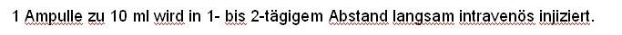 求助:德语说明书中关于用法用量的翻译: 德语原文如下: 1 Ampulle zu 10 ml wird in 1- bis 2-tägigem Abstand langsam intravenös injiziert. 请高手指教,谢谢。 |