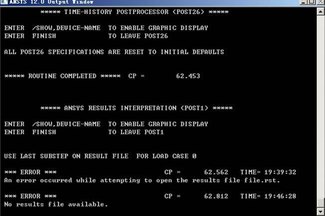 本人想用ANSYS12.0软件模拟材料的应力分布,经过定义单元类型和材料参数,建模,网格划分,设定边界条件及加载温度负载等过程后,运行完查看结果时,找不到相应的结果文件.rst,求高手指点!谢谢~~~ [ 来自科研家族 十亿光年 ] |