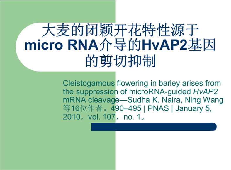 大麦的闭颖开花特性源于microRNA介导的HvAP2基因的剪切抑制 【研究发表于PNAS】已有2人参与