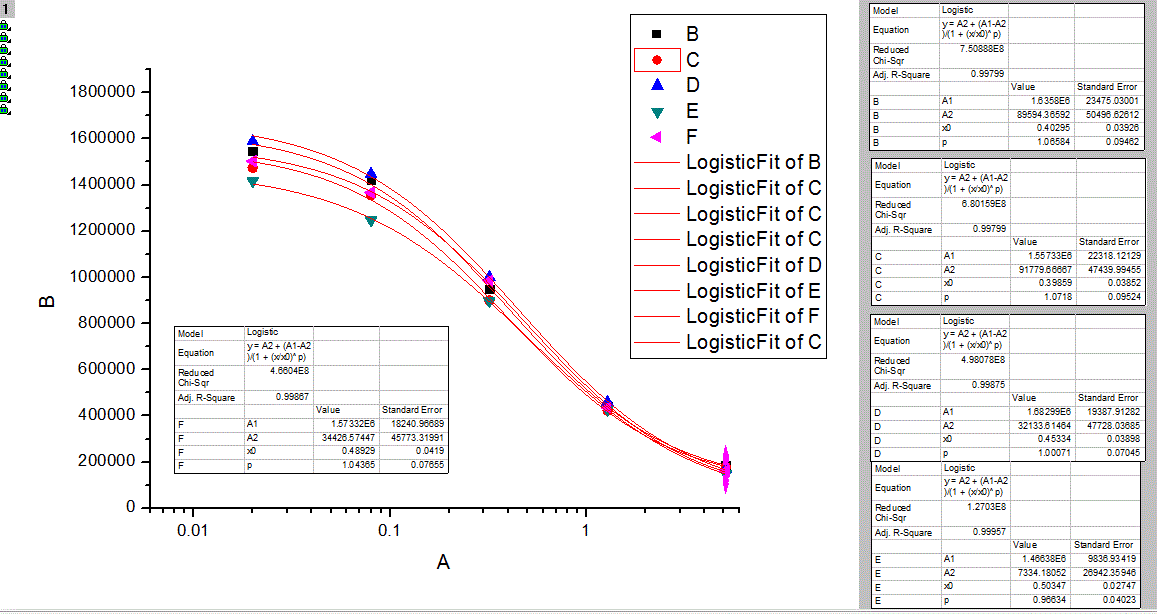 Origin8.0 如何在一张图里添加多个曲线的参数表格