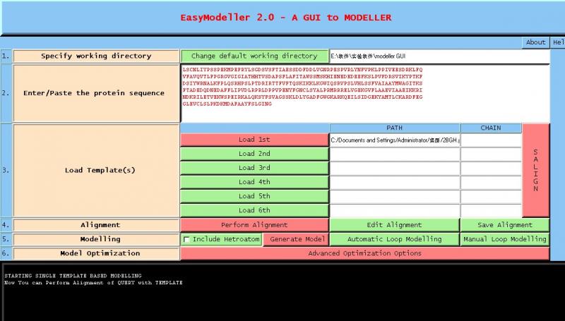 因为没有编程基础,不会直接用Modeller 同源建模,所以选择了modeller GUI。EasyModeller 中第四步Alignment时,点击Sample Text“Perform Alignment”弹出了选择程序的窗口,这是什么意思?求高人指点!! |