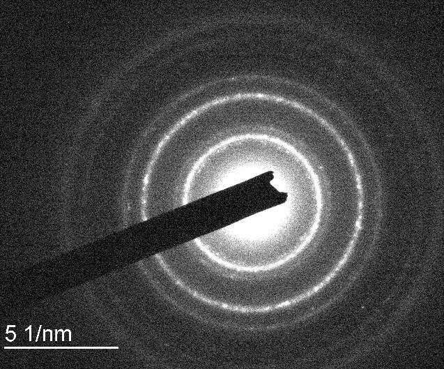 在外面测的样品,只发回来了tif格式的HR-TEM和ED照片。不知道怎么个标注法?哪位老师请帮帮忙,谢谢! 只要量出来d值就行,关键是不知道用什么工具量啊?谢谢 tif太大了,没法传,截了一个jpg不知道能看不能?谢谢 |