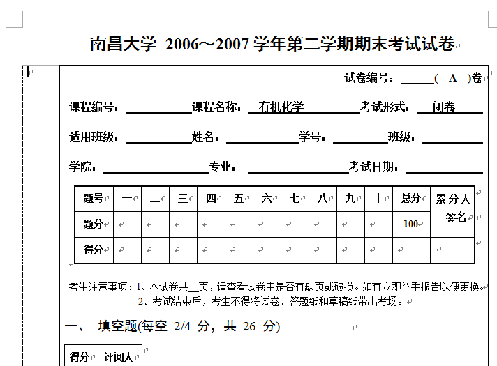 【真题资源】南昌大学有机化学(各专业)考试复习卷子