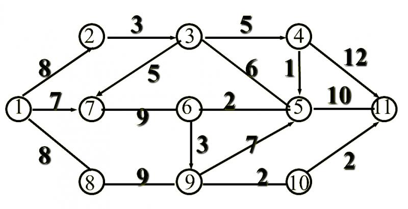 如图的交通网络,每条弧上的数字代表车辆在该路段行驶所需的时间,有向边表示单行道,无向边表示可双向行驶。若有一批货物要从1号顶点运往11号顶点,问运货车应沿哪条线路行驶,才能最快地到达目的地? 我想知道用matlab的Dijkstra算法,不知道该图的带权邻接矩阵怎么求? 希望高手能讲一下图的带权邻接矩阵,或者是讲解一下用matlab编程!!! |