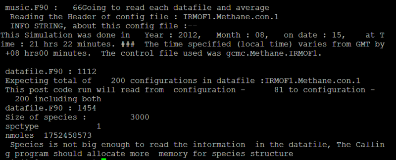看下面第一个图最后两行:Species is not big enough to read the information in the datafile, The calling program shoud allocate more memory for species structre. 这是什么意思呢?如何克服?这个例子是CH4在IRMOF1上吸附的例子。 下面这个图中Age of datafile这一部分是否应该保留呢?看ghcacj的连载文档上没有提到这部分。 @ghcacj [ Last edited by cenwanglai on 2012-8-15 at 23:45 ] |