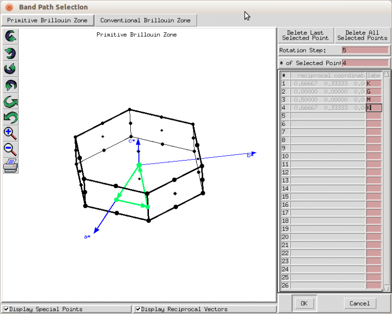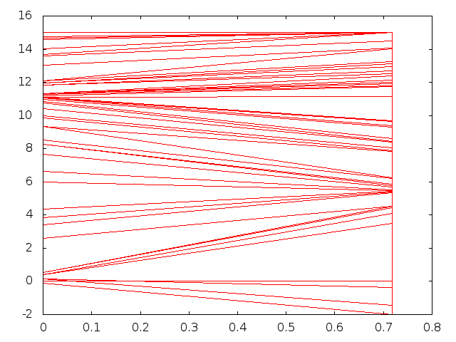 我的原胞 取高对称点时,参考的布里渊区 我使用的高对称点 用band-procar.f处理之后的band.dat格式是这样的: 这里总共有12810行,但是几乎每80个数据都是一个点。 使用gnuplot画出来的能带是这个样 怎么回事呢? |