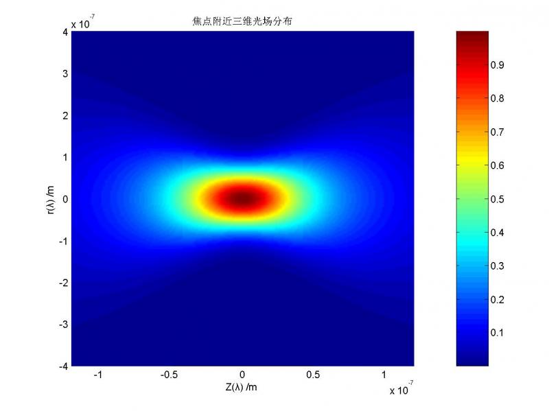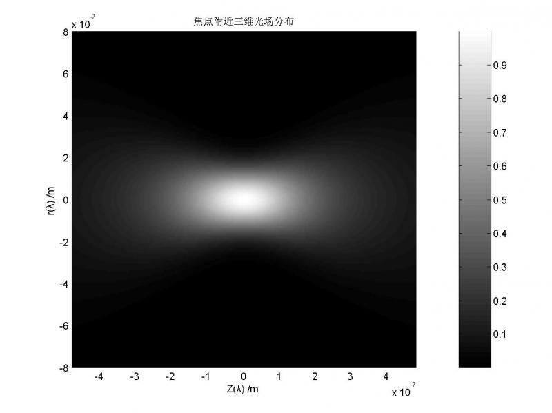 【Matlab编程】高斯光束经透镜聚焦,焦点处的三维光场分布