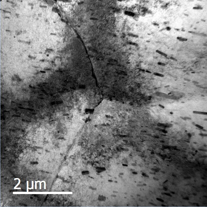 图片质量是不太好 这是哪个系列的铝合金,什么状态啊,貌似这个有点像2系合金的S相或其亚稳相 而且楼主为什么说类似棒状颗粒的东西是由于第二相剥落造成的,而不是棒状颗粒被显示出来了呢,我认为这个第二相并没有剥落,因为如下: 看照片上放大率,绝非高分辨图,应该是加了物镜光阑以后成的相,那么如果有第二相存在的话,应当是比基体暗,如果图中颗粒是第二相剥落,那么剥落处的强度应当比周围更强,也就是说这些所谓的颗粒应该是比基体颜色更亮,如何确认?在基体上做个选区衍射,在颗粒上做个选区衍射,对比一下即可。 |