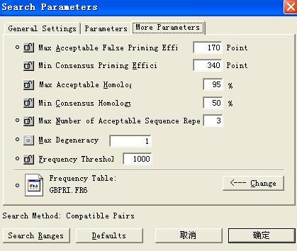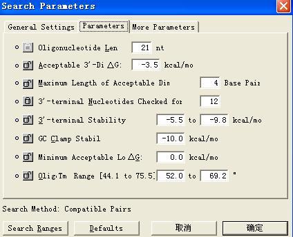 各位oligo6用户高手,小弟初涉oligo6 想用其设计引物,但设计出来引物数目太多,想提高一下筛选要求,但不知这些参数含义,及如何修改还望各位大侠给予指导,小弟在此谢谢了