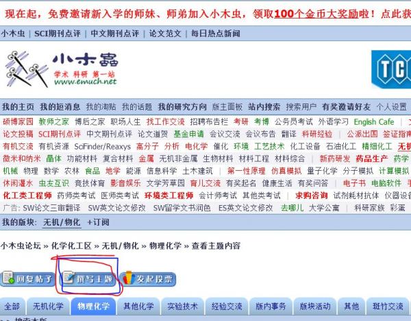 http://muchong.com/bbs/viewthread.php?tid=404746&page=1#pid2970043 这是新手指南,里面有发帖教程 简单点说就是选择“撰写主题” |