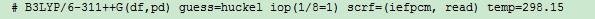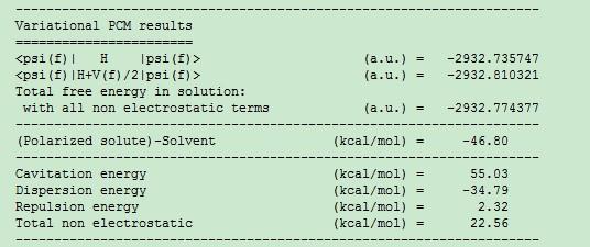 我在加入溶剂化模型计算物质在溶液中的总自由能时,发现输入文件里没有图中的内容,请各位大侠指教我是不是哪儿少了什么东西,多谢了。