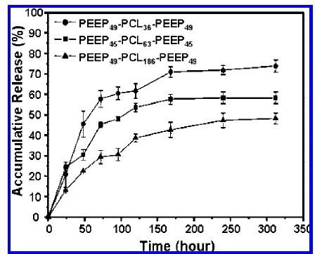 这个图是关于一些高分子材料性能的。请问这个accumulative release的图是怎么做出来的。上面的点是如何确定的,用什么方法测定的?请详细的解释一下,非常感谢!!
