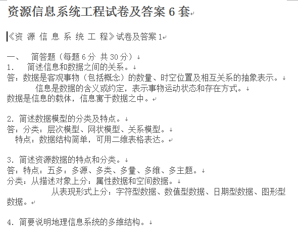 【试卷资源】资源信息系统工程试卷及答案6套