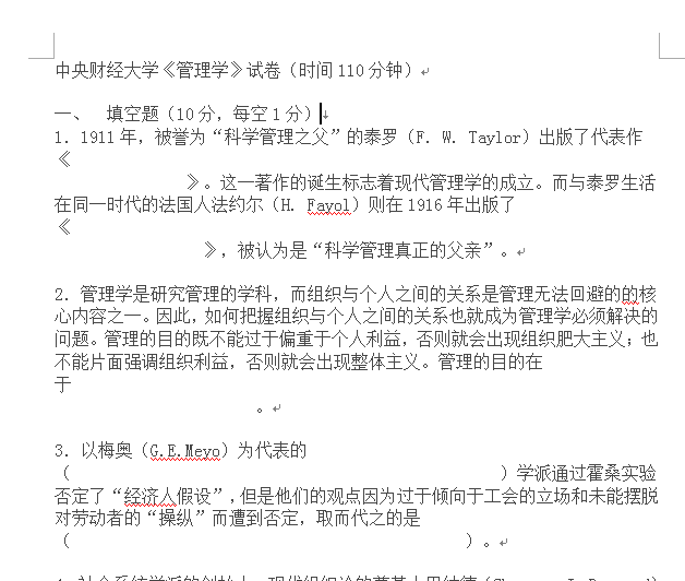 【试题资源】中央财经大学《管理学》试卷及答案2套