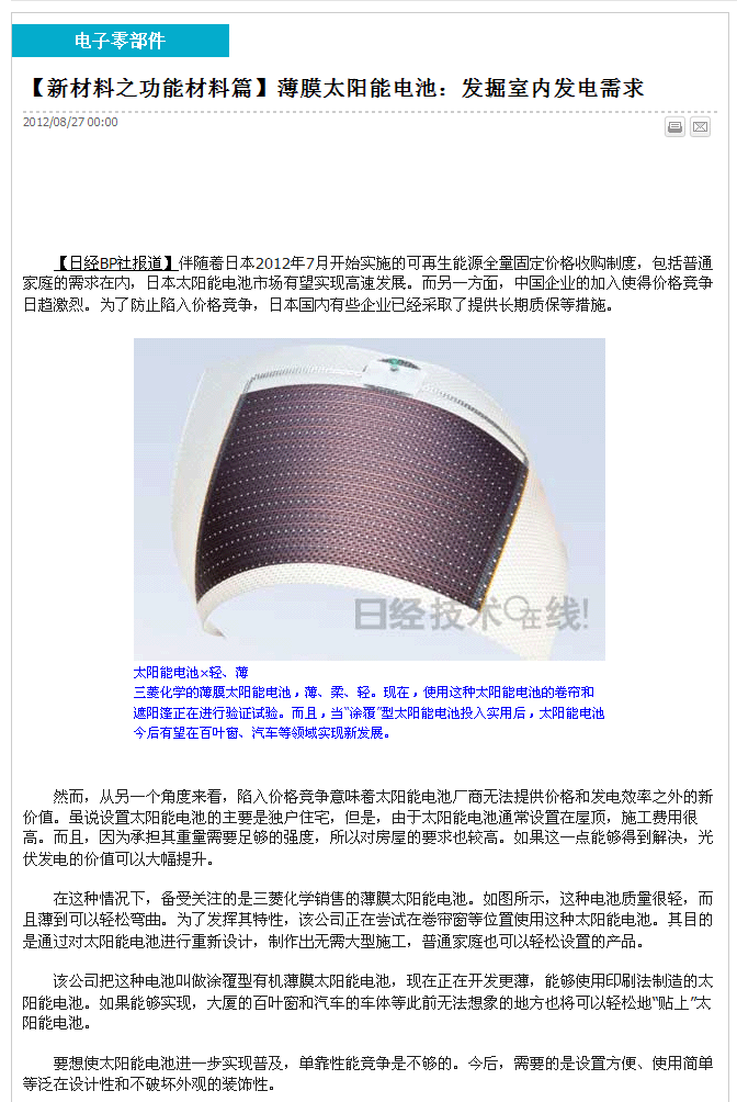 ZT【新材料之功能材料篇】薄膜太阳能电池:发掘室内发电需求 已有2人参与