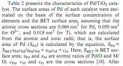 制备了一种Pd/Al2O3催化剂,想计算出活性比表面,参照一篇文献来计算,需要知道单个Pd,O2-,Al3+原子表面积,文献已给出了单个Pd,O2-的半径和表面积,有没有人知道Al3+原子的半径和单个原子的表面积吗?最好能给出引用文献的,先谢谢大家了O(∩_∩)O~ 下面是算法引用的文献: Jian xu et al, Catalysis Communication 6(2005)462-465 |