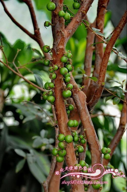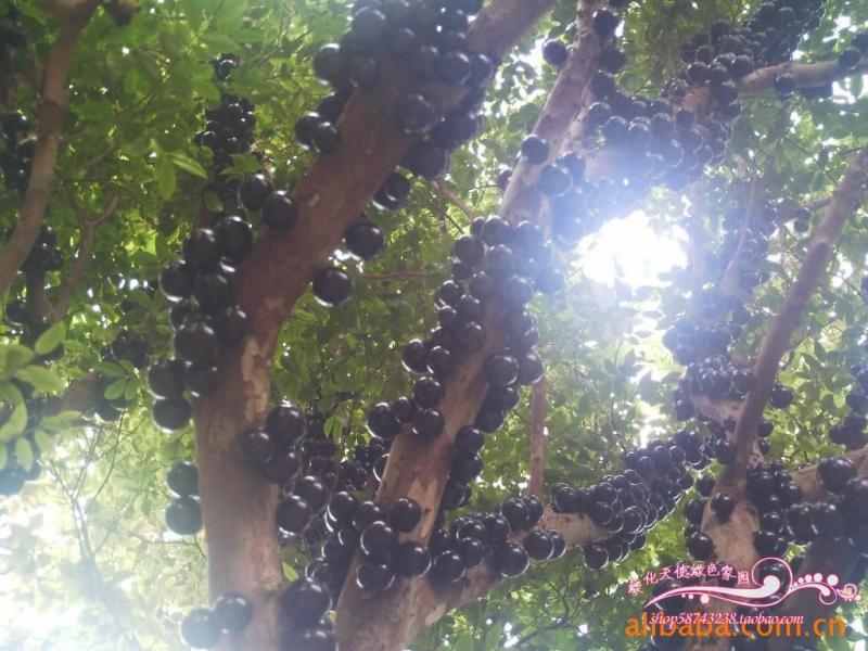 嘉宝果,俗称“树葡萄”,又名拟爱神木、美味热带葡萄,属桃金娘科,常绿灌木或灌丛,树高与树冠可达10~12公尺,老树达百年仍可生产,干光滑,表皮易脱落,叶对生,长卵形或长椭圆形,先端尖,全缘,新叶淡红色,四季常绿。 一眼望去一片紫黑色的果实,极为壮观。嘉宝果树姿优美,全年枝叶浓绿茂盛,一年四季都可开花、结果,让人啧啧称奇的是,嘉宝果同一枝干竟可以同时开花、结果、成熟,花开在枝干上。