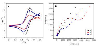 你好,感谢回帖。我对EIS了解甚少。说的不够专业的地方,还请见谅。 测试的时候没有选择过电位啊,只设置了频率,100Khz-100mhz (作图时候没有用全部的数据)。 出峰电位,指的是CV上的电位?我当时测试,开路电位是+0.1950V。 测试液:The CV and EIS were conducted in 0.50 mol/L KCl solution containing 0.01 mol/L K3Fe(CN)6 solution and 0.50 mol/L KCl solution containing 5.0 mmol/L K3Fe(CN)6/K4Fe(CN)6 (1:1)。 电极的规格都是一样的,实验中对电极的处理也一样。 实验过程没有问题,结论我们也认为没有问题,就请高手解决其中原理问题。例如,EIS和CV表征的东西不一样,才会出现这样的图。。。或者,我的材料如何如何。。。 |