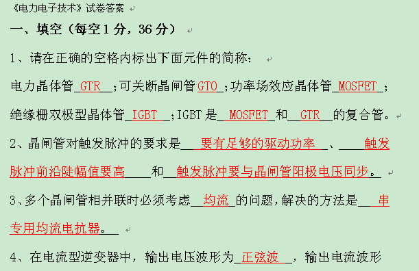 电力电子试题带答案 欢迎机电 电气 专业的下载。。。
