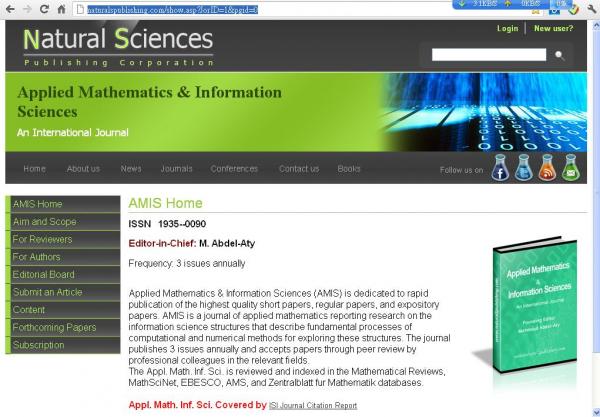关于 Applied Mathematics & Information Sciences (AMIS) 投稿 请问以下两个哪一个是真的投稿系统? 我猜两个都是真的,一个是真身,一个是代理(合作)。 1) http://am.expertsociety.org/Author/Login.aspx (http://www.expertsociety.org/SpeciaIssuesInfo.aspx?id=300) 2) http://naturalspublishing.com/show.asp?JorID=1&pgid=0 amis.JPG notes: 那个画面标价是从 http://www.expertsociety.org/SpeciaIssuesInfo.aspx?id=300 得来的... [ Last edited by rockinuk on 2012-8-29 at 02:51 ] |