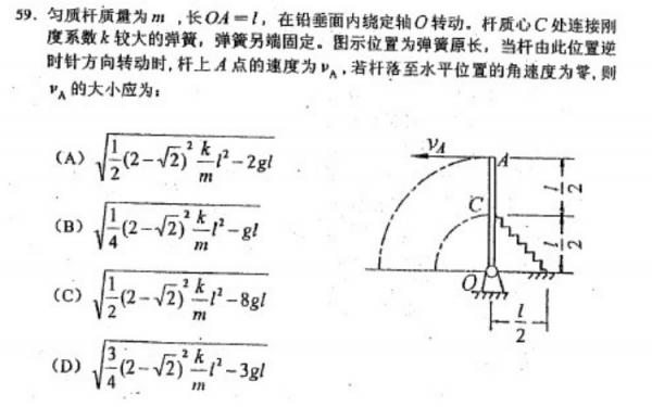 能量守恒定律可以做,以O点水平面做基础杆开始的动能和重力势能和弹簧的动能等于最后的弹簧动能。我2年前还行,哎,现在 公式差不多都忘了,希望能帮到你!