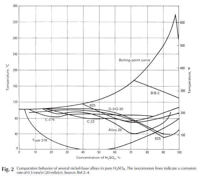 镍基合金在硫酸中的等腐蚀图(0.5mm/年)