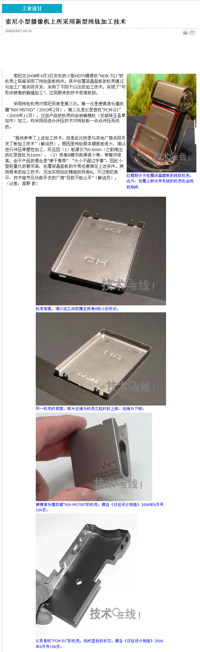 ZT索尼小型摄像机上所采用新型纯钛加工技术