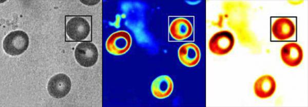 作者:宁馨谷(www.nxgu.net),源自science 8月30日科学快讯 一罐糖豆有多少,这恐怕难以直接猜测,然而仅凭图像去试着猜测细胞重量又如何呢(图左)?科学家们现在仅仅利用实验室常规显微镜和一台数码相机就实现了如此绝技。图像处理算法可以通过分析对象的扭曲和折射程度来推算其组成(composition)(图中),从其组成可以得知其密度(图右),再加上显微镜测得的尺寸大小和体积,科学家们即可算出细胞质量。这项技术报道于本周物理综述通讯(Physical Review Letters)中,报道中此技术计算出人类血液红细胞平均干重为亿万分之27.2克,这与之前通过专门订制仪器(custom-built instrument)测出的结果相一致。研究者称此方法可用来帮助检测细胞的生长与随时间的变化,比如因为疾病或环境问题而引起的生长变化。 [ Last edited by winecar on 2012-9-1 at 17:44 ] |