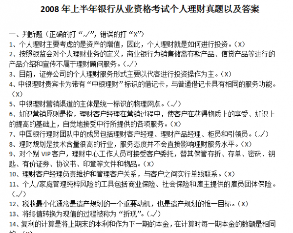 【真题资源】2008-2010 年银行从业资格考试《个人理财》真题及答案