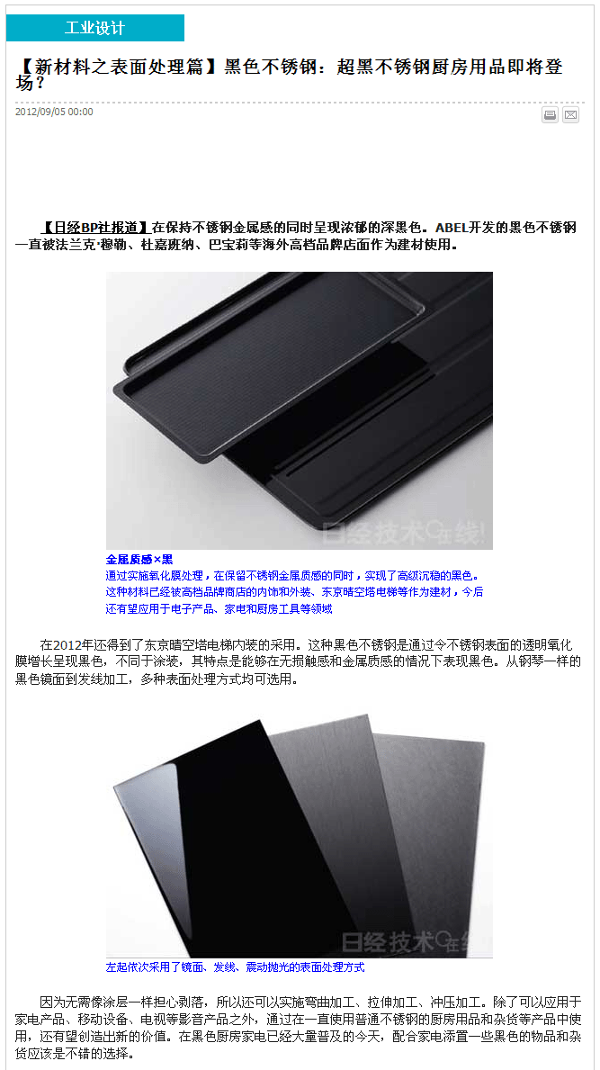 ZT【新材料之表面处理篇】黑色不锈钢:超黑不锈钢厨房用品即将登场?已有9人参与