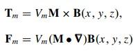 计算中有这样一个问题: 背景:把一个磁化体放在已知的磁场中(是一个周期性均匀磁场)磁场的分量如下:x方向恒定;z方向为锯齿波。见下图。 磁场强度B是矢量,它与磁化体受到的力矩正比。 磁场梯度▽B与磁化体受到的力正比。但是▽B怎么计算??? 第二个式子里面的(M·▽)是什么意思? ###现在我要计算这个磁化体受到的力和力矩,求高手指点### |