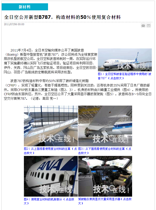 ZT 全日空公开新型B787,构造材料的50%使用复合材料