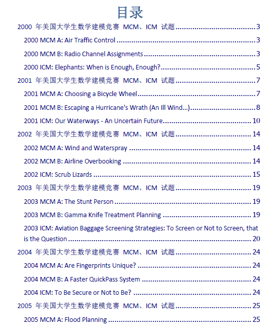 【真题资源】mcm美国数学建模历年试题(2000-2009)