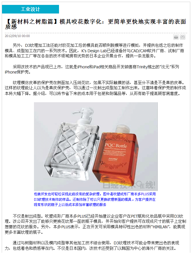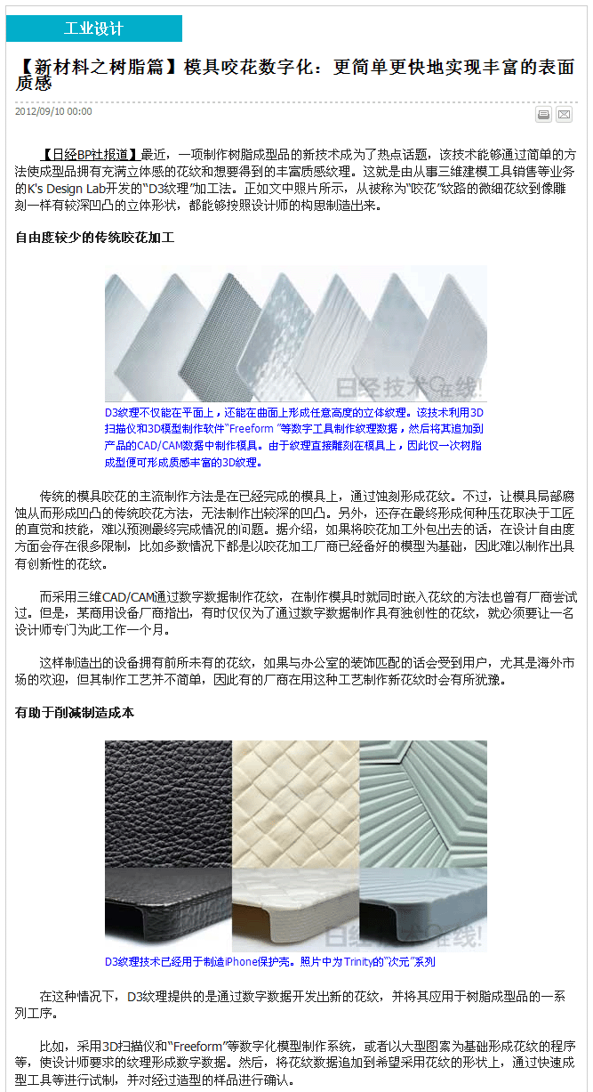 ZT【新材料之树脂篇】模具咬花数字化:更简单更快地实现丰富的表面质感
