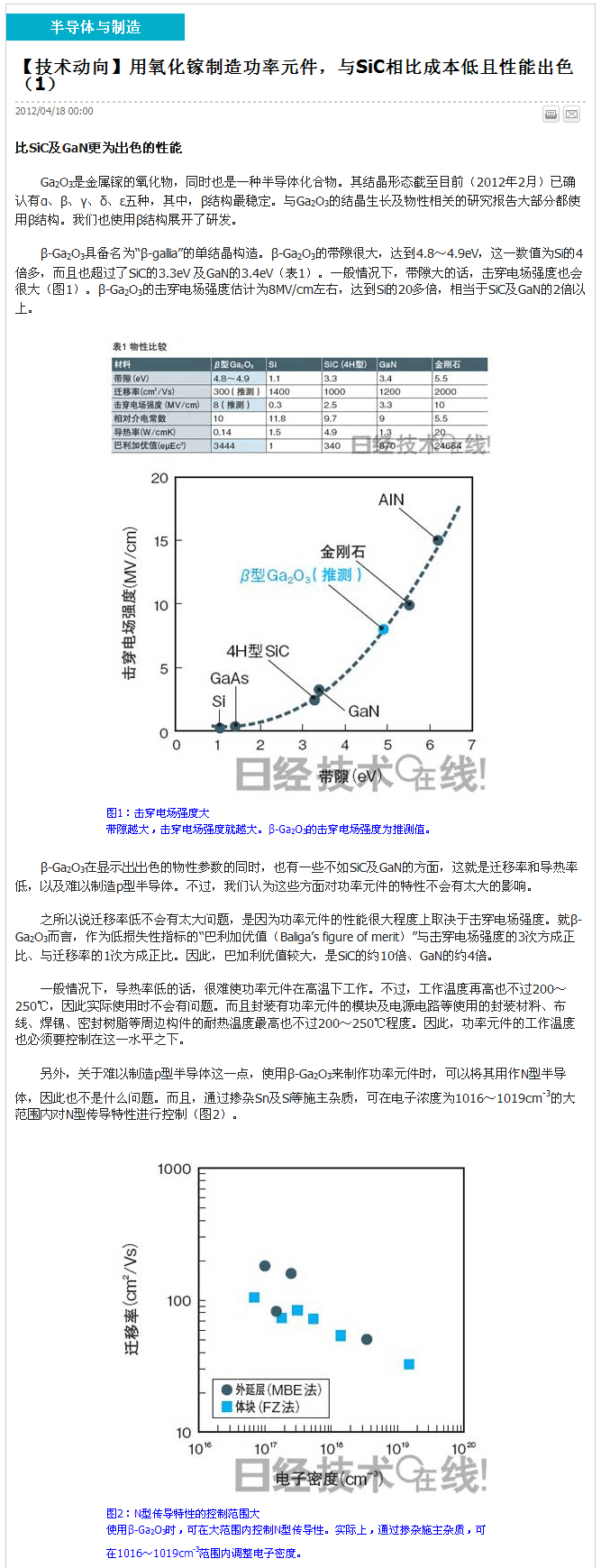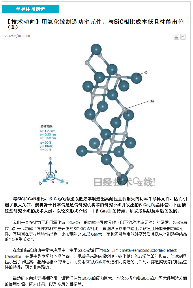 ZT【技术动向】用氧化镓制造功率元件,与SiC相比成本低且性能出色(1)