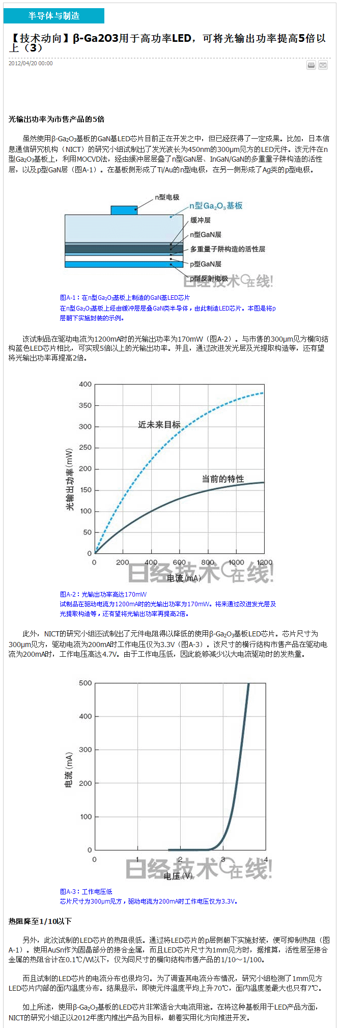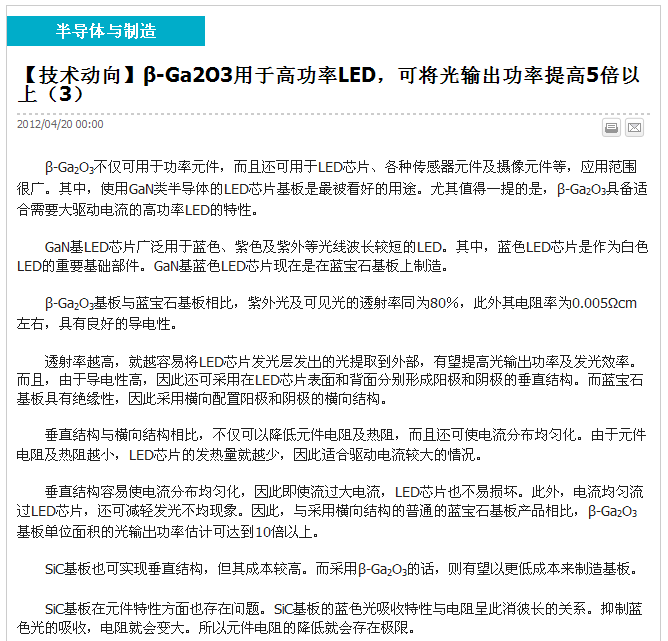 ZT【技术动向】β-Ga2O3用于高功率LED,可将光输出功率提高5倍以上 已有1人参与